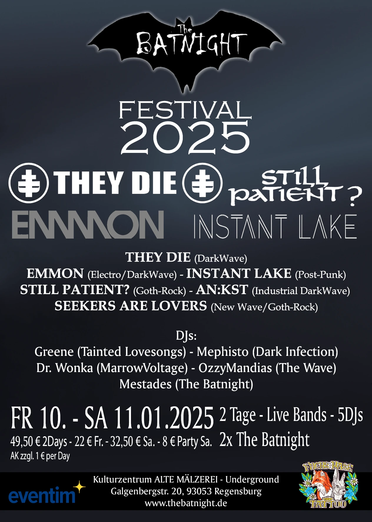 Musik, Tanz und Treffen von Goth für Goth. Kein Mainstream. Kein Kommerz. Kein Konformismus. Nur Gothic. Das Underground der alten Mälze in düsterem Ambiente und typischem Gothicflair sowie die große Tanzfläche und Musik unter dem Schirm der Gothic-Kultur aus den 80ern und 90ern versprechen tief schwarze Nächte für Regensburg.